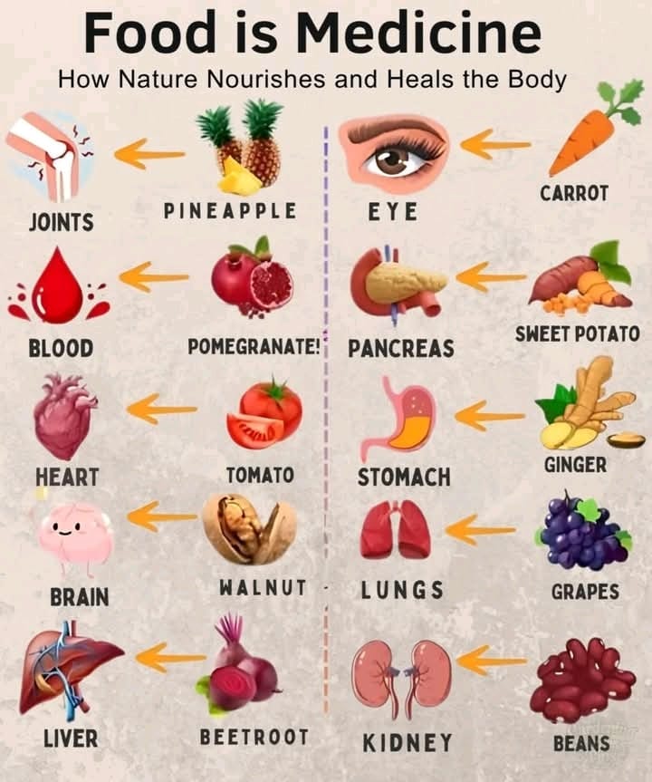 Nature has an incredible way of providing us with foods that not only nourish our bodies but also target specific organs and functions. The concept that “Food is Medicine” reminds us that a balanced diet rich in whole, natural foods can help prevent illness, support healing, and improve overall well-being. This guide highlights ten powerful foods and their unique health benefits, showing how they resemble and aid the very organs they support.