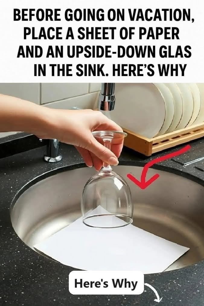 Before heading out on vacation, most people remember the basics: locking the doors, setting the alarm, and unplugging electronics. But there’s one little-known trick that can save you from unpleasant surprises when you return—placing an upside-down glass and a piece of paper in your sink.